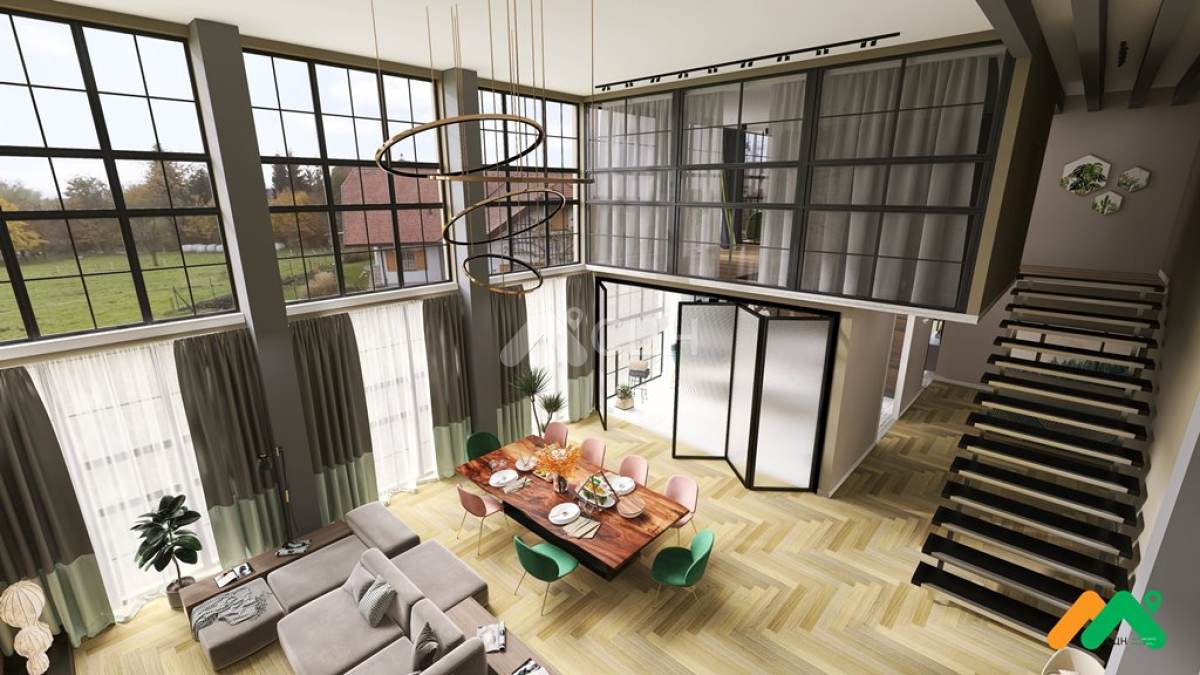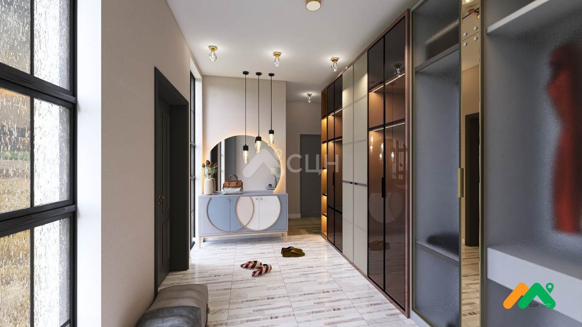 Заказчику выполнена работа по созданию ДИЗАЙНА ИНТЕРЬЕРА 2-х этажного таунхауса общей площадью 150 кв.м и передана в виде 3d визуализации, а также предоставлена ссылка, где можно в интерактивном режиме осмотреть каждый угол и элемент интерьера. !!Фишка этого интерьера - большая гостиная с панорамным остеклением и высоким потолком.