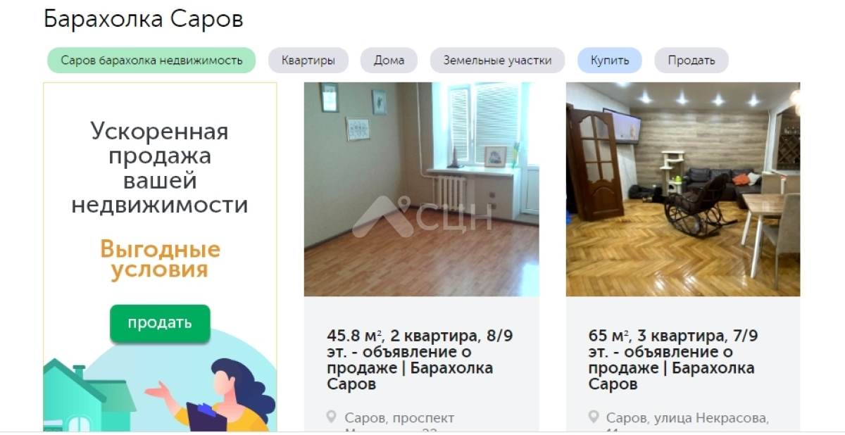 Барахолка Сарова: недвижимость, квартиры, вещи и объявления. Помощь от агентства недвижимости СЦН.