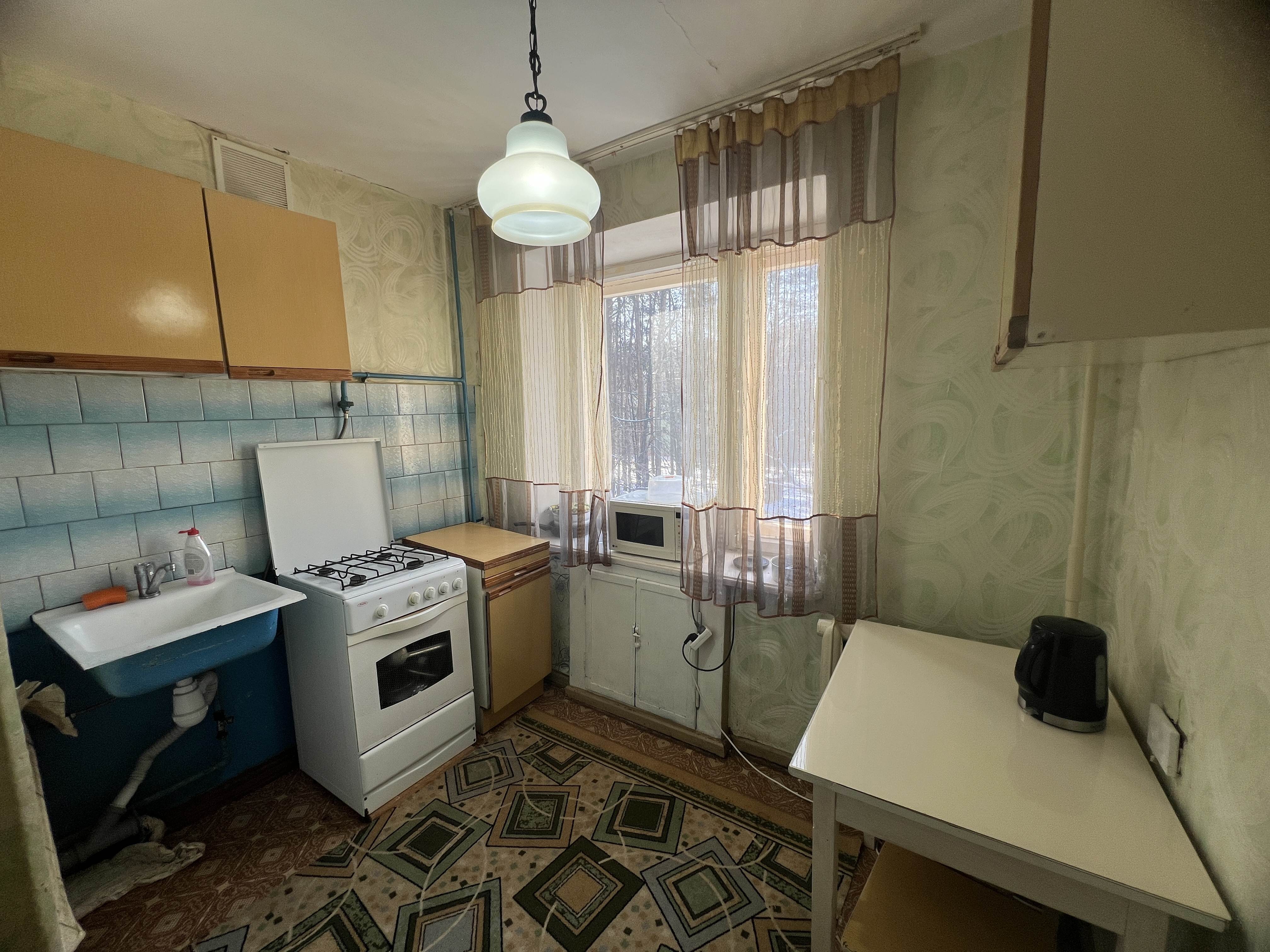 Квартира находится на комфортном третьем этаже пятиэтажного кирпичного дома, что обеспечивает отличную тепло- и звукоизоляцию. Внутреннее пространство включает одну комнату, отдельную кухню и раздельный санузел. Общая площадь квартиры составляет 30.8 квадратных метров, из которых 15.5 квадратных метров занимает жилая зона, а 6 квадратных метров — кухня, где уже установлен кухонный гарнитур и шкаф-купе.